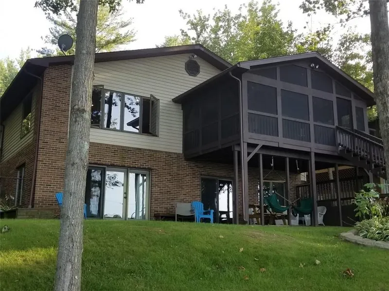 Spacious 5 bedroom lakefront home with beautiful view along the southeast side of lake. Large, open floorplan with lots of windows and doors overlooking lake. The main level boasts an open floorplan with huge living room along lakeside, open kitchen/dining room area, nice butlers pantry, 3 bedrooms and one bath. There is a newer screened in porch off the living room overlooking lake. The finished walkout basement has two large bedrooms, a nice rec room and spacious bathroom as well as laundry area. There is also a large side deck, open and covered patio, fenced in backyard, attached garage and newer stairway down to the seawall and docking area. This a great property with an excellent location. Lots of square footage for the money.