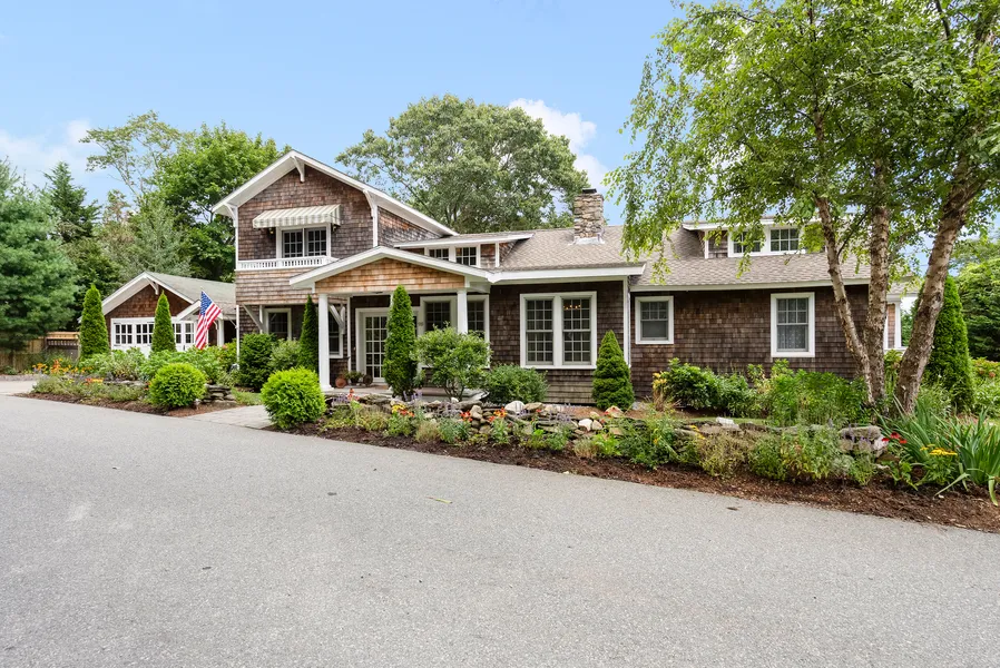 Located in the desirable Plum Beach neighborhood with water views including both the Jamestown and Newport Bridges, this classic Plum Beach home has been completely renovated. This surprisingly spacious and private 100-year-old New England shingle-style home has ample room for relaxed year-round or summer living. A fully fenced in yard features a meticulously maintained lawn for summer games and quiet enjoyment. An inground saltwater swimming pool, landscaped gardens, walkways, and a separate pool-house with farmhouse kitchen highlight the property. There is also an outdoor shower, seasonal half bathroom, tool shed, vintage workshop, and even an electric golf cart is included for summer fun! There is an irrigation system to maintain the lawn and a worry-free automatic whole house generator. French doors throughout the house provide casual access to balconies, decks, ivy-lined stone stairs and a private patio surrounding the pool. The 100-year-old fieldstone fireplace creates a relaxed and inviting atmosphere in the spacious window-lined living room. There is a formal dining room with its own back staircase, 3-season sunporch with vaulted ceiling, two home offices with water views, a family room perfect for cozy reading or TV viewing, and a beautifully designed chef's kitchen. This home features a laundry & fitness rooms, garage & newly installed ductless air conditioning. If you are looking for the quintessential coastal living experience, this house has it all!