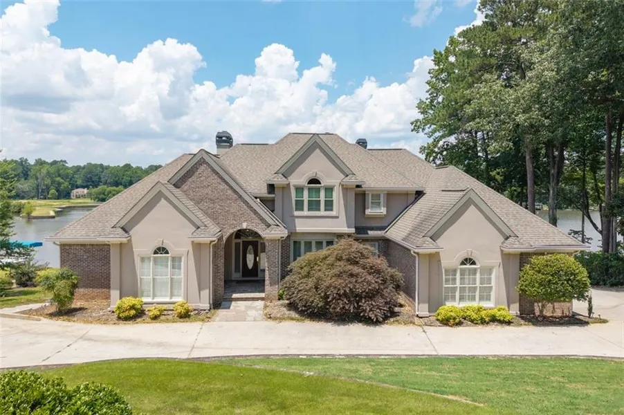 Welcome to a lifestyle of refined elegance and serene waterfront living. Nestled in the highly sought-after Lake Spivey community, this magnificent residence is a masterclass in architectural beauty and sophisticated comfort. From the moment you step into the soaring two-story foyer with its floating staircase and an abundance of natural light, you'll be captivated by the sense of grandeur and grace that defines every inch of this home. Designed for both everyday living and luxurious entertaining, the open-concept eat-in kitchen is a culinary dream featuring gleaming granite countertops, crisp white cabinetry, dual ovens, and a stunning three-sided fireplace that also warms the adjoining custom sunroom. Here, walls of windows frame panoramic lake views, creating a seamless indoor-outdoor ambiance that invites relaxation. The main level showcases thoughtful functionality with a formal dining room, a refined study or office, and a gracious living area - all adorned with fine finishes and classic design elements. The primary suite is a true private retreat with its own fireplace, a spa-inspired ensuite bath boasting double vanities, a soaking garden tub, and a separate glass-enclosed shower. Downstairs, the daylight terrace level offers a spacious additional family room with fireplace, flexible rooms ideal for guest suites, a home gym, or a second office - perfectly suited to your evolving needs. Step outside to your private boat dock and embrace the rare opportunity to own direct access to one of Georgia's most cherished private lakes. Whether you're boating at sunset, entertaining on the water, or simply enjoying the view, every moment here feels like a luxurious escape.