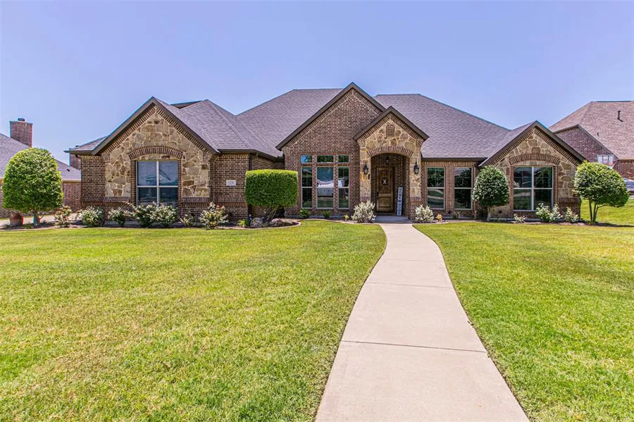 Welcome to your dream home located in a prestigious gated community. This exquisite property offers an impressive 4-bedroom, 3-bathroom layout, spanning approximately 2,847 sqft of luxurious living space. Situated on 0.60-acre lot, this residence exudes elegance and provides a private sanctuary for you and your family. As you enter, you'll be greeted by the timeless beauty of hand-scraped hardwood floors that flow throughout the main living areas, lending an air of sophistication and warmth. The open floor plan seamlessly connects the living room, dining area, and kitchen, creating an inviting space for relaxation and entertainment. The kitchen is a chef's delight, boasting granite countertops that beautifully complement the custom cabinetry. Equipped with high-end appliances, a center island, and ample storage space. An office space provides a quiet retreat for work or study. One of the highlights of this property is the expansive covered patio complete with a wood-burning fireplace.