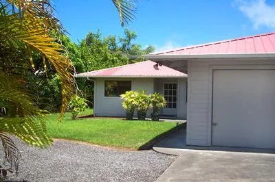 Successful beach rental opportunity on Kaloli Point. Only one block to the ocean and HPP beach park. Unobstructed view of the ocean from the house and lanai and beautifully landscaped yard. Easy flexible design, large kitchen, vaulted ceilings and enclosed garage. One bedroom has been opened to the living area and could be used as family room, office or bedroom. Sellers have furnished the house in an island, tropical theme and most furnishings are available separately.