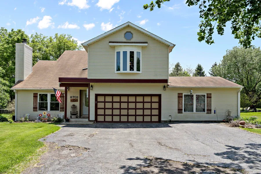 Absolutely beautiful large home on over 1/2 an acre. This home includes a master suite with walk-in closet and attached bath. 4 additional bedrooms are upstairs with a shared bathroom. An additional master suite on the main level with private entrance is also handicap accessible. Fenced in backyard with playset, climber, trampoline, hot tub and gazebo included. The home features, Granite counter tops, hardwood floors, a fireplace and wood burning stove in addition to new furnace, A/C, and sump pump added in 2018. Blocks from the lake with access to a boat launch and beach. The HOA also has a creek access with great fishing opportunities! The home is located in the desirable Woodstock School District. Sellers are relocating and highly motivated. 1 year home warranty, and riding lawn mower! Come take a look and make an offer today!