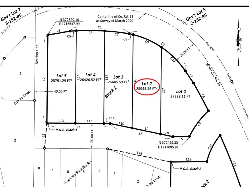 Newly subdivided property at Rice Lake! County-owned Block 1 of Lake Park 3rd Addition to Rice Lake has been subdivided into five lots and they are now available for purchase. Located just steps from the public boat ramp, each lot measures well over half an acre and has utilities nearby for development. Build your dream home or lake cabin and enjoy the benefits of the existing mature trees. Land slopes gently down toward the lake facing south allowing you to build a beautiful home with walkout basement and large windows for views of the water - passively heat your home in the winter with sunlight along the southern horizon! Lots like this don't come available often, call an agent for more information today.