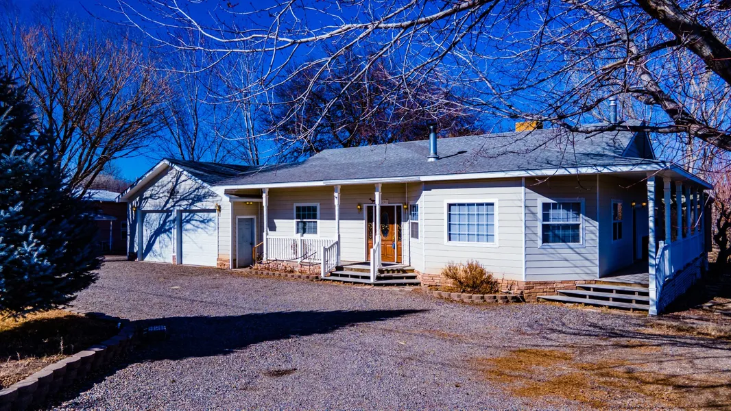 Absolutely charming country property where you will find all you need. It boasts 3 bedrooms, 2 are master's, and 2.5 baths. The open floor plan is inviting along with wood and coal stoves and lots of natural light. The kitchen has a large pantry and custom cabinets. You may actually enjoy dishes with this view! there is plenty of storage with a large, hidden cellar. You will enjoy the landscaped yard on your beautiful wrap-around porch. Or enjoy the workshop for your hobbies. The lot is .61 of an acre +/- with mature trees and irrigation, per seller.