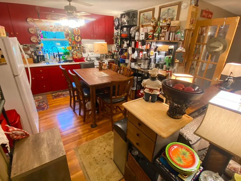 This Beautiful waterfront home is waiting for you to call your own. Gorgeous serene views, park-like yard. This home has a red metal roof, vinyl siding and work/shed w electric. Fully furnished! Just bring your toothbrush, fishing pole and suitcase. Move-in ready. Hardwood floors throughout most of home. Plenty of privacy, quiet and peaceful. Large fish cleaning station on new dock with a vintage cast iron farmhouse sink. Minutes from Chessy Creek boat landing. The wrap around deck overlooks the lavish foliage. The previous owners installed an open freight elevator to make bringing in supplies/groceries easier. Property has outdoor lighting. New 4' high fenced in area, new hand rails all round. The underside has been insulated & covered. Call today to see!