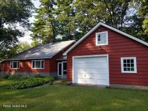 This is a lot of home with over 1800 SF. It does need updating., but there is so much about this home that is positive, including Mountain views and views of the Hudson River. Just down the hill and up Terrace Ave is a public beach for the area residents. Hardwood floors in the living rm are from the old Corinth High School gym, Wood floors under the carpet in the entry. Built-in cabinets/bookshelves built by the owner. A huge addition on the front was added years ago to offer a family area and a formal dining area.The large bedroom upstairs could be split back into 2 BRs. Lots of storage in the upstairs knee walls, and in the loft area of the garage. Walk-out has 5 rms, 2 that are semi-finished. Love the breezeway and little side porch. Exterior painted last year.
