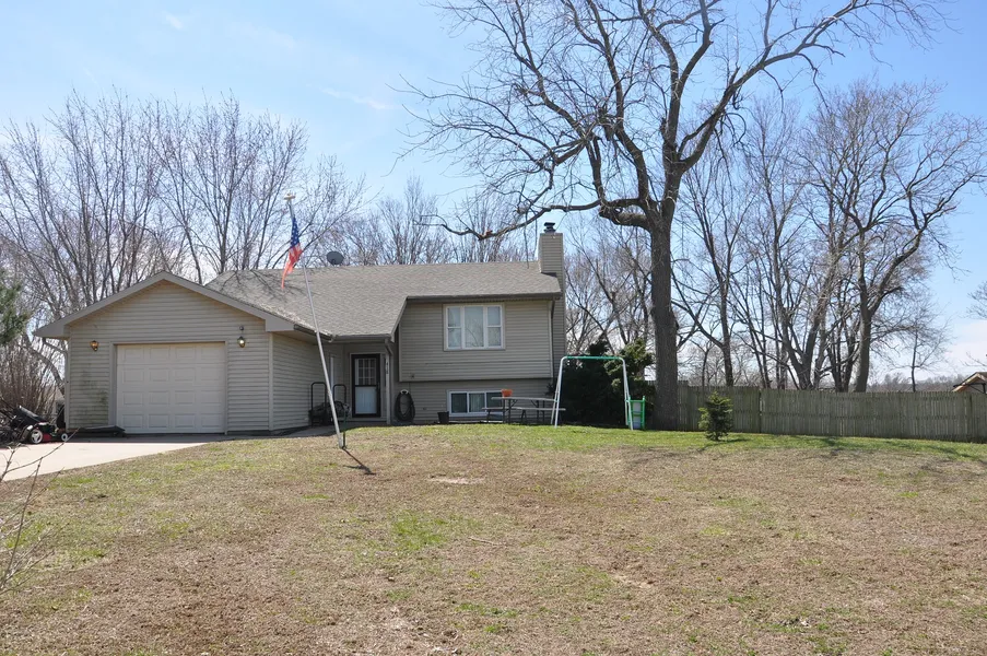 This split- level home sits on 4 lots. Main floor living includes Living room, dining/kitchen combo with breakfast bar, 2 bedrooms and a bath. Lower level has an additional bedroom, family room with fireplace, laundry room and a bath. The deck is off the dining room and the backyard is surrounded by privacy fence. 1 car garage.