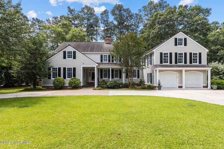 Custom built home on the 5th fairway of New Bern Golf & Country Club. Beautiful curb appeal includes a circular driveway with stonework detail, well-manicured lawn, and a grand house view. The list of upgrades and custom features of the home is vast and includes: heart pine, wood plank floors almost 9'' wide throughout many rooms both up- and downstairs; handcrafted cabinetry, trim work, corbels, and fireplace surrounds throughout; solid interior doors; large closets; and tons of storage. A well-appointed kitchen double wall ovens, paneled refrigerator and dishwasher, island with seating, and a custom, walk-in pantry - is open to a spacious eating area with a large picture window overlooking the golf course. The kitchen is connected to the massive dining room by a butler's pantry featuring a wet bar, stunning cabinetry, a wine fridge, and a second dishwasher, perfect for entertaining large groups. The home boasts two master bedrooms, one on each floor. The downstairs master includes plantation shutters, a large window seat with storage, two walk-in closets; a large en suite with a jetted tub, walk-in shower, and double vanities; and a separate room off one closet with washer/dryer hookups. Also downstairs are a an office and a library, both of which have a wall of cabinetry, a half bath, and a mudroom. Upstairs, in addition to the second master, there are two guest bedrooms, two full baths, a laundry room, a large rec room with wet bar and fireplace, a lockable storage room, and a large walk-in storage room. The 3rd floor offers 344 sq ft (not included in the house sq footage) with walk in attic space and a craft room that is heated/cooled but not completely finished. This home has two tankless water heaters, zoned hvac in 5 different places, double car garage and lower taxes than in the city limits. Close to Bangert Elementary, Meadows Park, Trent Woods Town Hall and New Bern Golf & Country Club. This town does allow street golf carts with certain guidelines