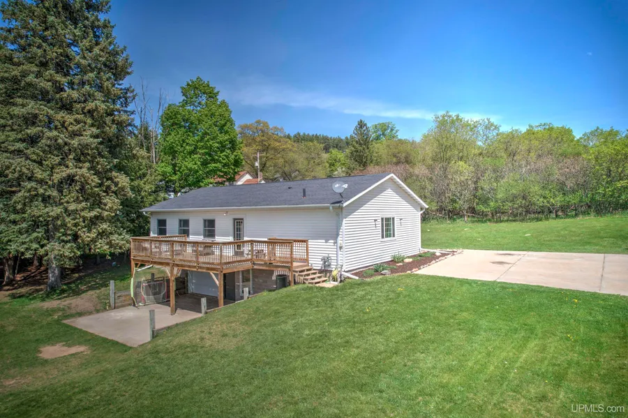 Tucked away in the heart of Iron Mountain, this charming 3-bedroom, 2.5-bathroom home combines comfort with functionality beautifully. Situated on a generous lot just steps from downtown, it boasts a vast yard with shaded tree areas, offering a private and tranquil outdoor haven. The home features two decks, perfect for entertaining, barbecuing, or simply savoring a peaceful morning coffee amidst serene surroundings. Inside, stay cool with the central air conditioning! The home offers three well-lit bedrooms, one of which is a spacious primary bedroom with an en-suite bathroom and walk-in closet, providing the perfect storage space. The bathrooms are equipped with modern fixtures and a touch of sophistication. The open-concept living area seamlessly connects the living room, dining room, and kitchen, ideal for social gatherings and daily life. The kitchen is well-equipped with a wrap-aro...