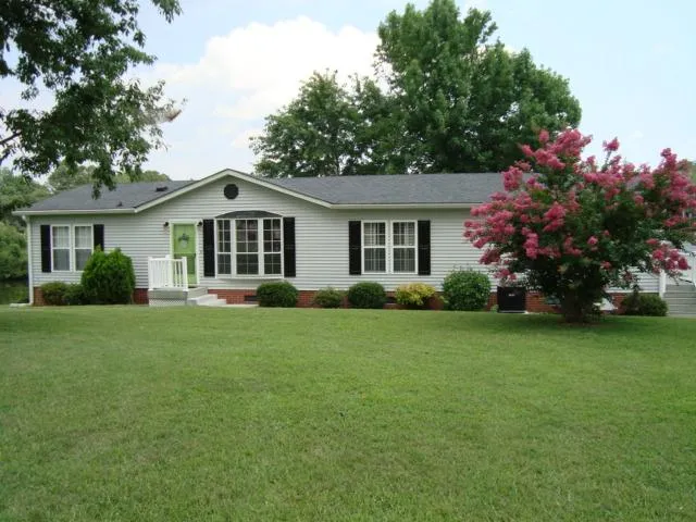 Very attractive three bedroom two bathroom home privately situated on a very gently sloping lot in convenient location on Lake Gaston. It is a split bedroom design with large living and dining room in between. The kitchen is lake side with lots of cabinets,work island and good view of the lake. The family room with fireplace/gas logs leads off the kitchen and has sliders out to a large sun room with EZBreeze windows which make it more like a screened porch when open and there is also a large deck lakeside. The wide waterfront is cleared, grassy and rip rapped with a single boathouse, jet ski and canoe lift with sitting area and awning for when it's very sunny! The water is about 5' deep and the view is lovely. There is also a detached two car garage with workshop area and large concrete parking area. A large shed is roadside for all your garden tools. Great views from most rooms!