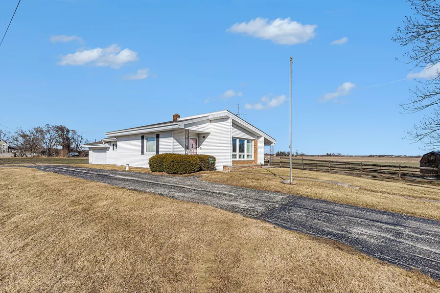 Check out this unique Mid Century Modern Style Home! This well maintained cutie sits on .65 acres, surrounded by open land so it feels even larger! The yard is fenced and has a very nice storage shed. Living room features vaulted ceiling and built-in bookcases. Large (new) picture window. Dining area has built-in curio cabinet and plant shelf. Kitchen retains some of it's vintage feel, while the necessities have been updated. The garage is extra deep for storage. Circular driveway makes for easy in and out as well as extra parking. Enjoy the 4th of July parade right from your own front yard.Keep in mind that this home is on well and septic which means NO WATER AND SEWER BILL!! Put this home on your Do Not Miss List!