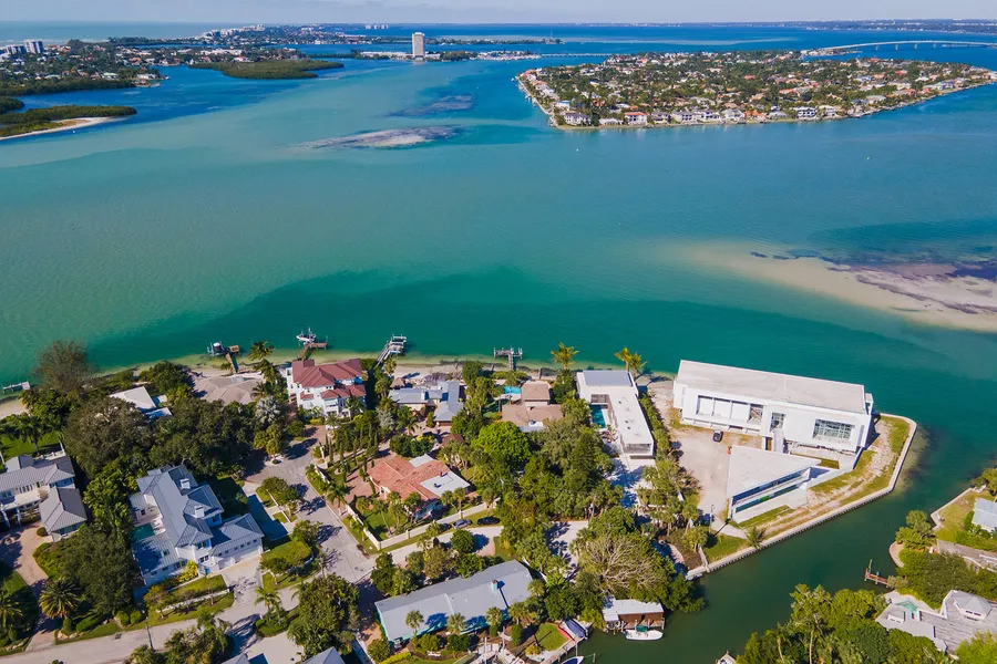 Take advantage of this rare opportunity to own your very own slice of paradise along the crystal blue waters of world-famous Siesta Key. Located in an ideal location on the preferred north end of the island, and boasting stunning panoramic views of downtown Sarasota, Bird Key, Lido Key, the John Ringling Causeway, and Big Pass, this property on .65 acres, encompasses over 161' waterfront feet on 2 sides (98'+ on the bay and 63'+ on the protected water of Bayou Louise) and offers one of the area's most coveted lifestyles. For the avid boater, there is a new fully equipped dock with a 16,000-lb. lift and seating to take in the amazing views and daily sunsets. In addition, there is a boathouse with a dock on Bayou Louise and a private beach. Take down the current structure and start imagining your dream home today. The current owners have had a home plan created by award-winning architect M...