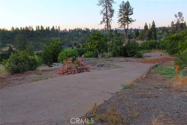 Fast and easy commute to Chico on the south end of Paradise. This lot is on a street just a 30 seconds drive to be on Skyway. It is peaceful and you will see some beautiful sunsets from here. The driveway is still in tact and has a nice rock retaining wall following it on the right side as you enter the property. Some great plants to see when you stop by and walk to explore the property. The seller has put up some stakes that will give you an idea of where the property lines are, however this is not a legal survey and may not be accurate. Buyers to have survey done when they are ready to build. The home that stood here was a 3 bedroom, 3 baths and offered 2156 square feet. The family loved this location, so close to Chico commute and just a few minutes to stores, banks, parks and more. Buyer to have any inspections they deem necessary. Septic condition unknown. Take a look soon!