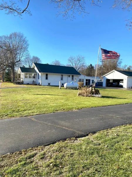 This beautifully maintained home features an open floor plan and 2 bedrooms, 1.5 baths, offering comfort and functionality throughout. The bright kitchen includes a large island, ample cabinet space, and a walk-in pantry, perfect for all your storage needs. Convenient main-floor laundry adds ease to daily living. A den currently being used as an office, provides additional workspace, while the spacious family room with a cozy fireplace is ideal for relaxing or gathering with guests. The finished basement offers potential for additional living space, hobby areas, or recreation. Outside, you'll enjoy a great outdoor space for entertaining, a 1-car attached garage with extra storage, plus a detached 2-car garage for vehicles and additional storage. A circle driveway provides easy access and ample parking. This move-in ready home has everything you need—space, storage, and modern convenience...