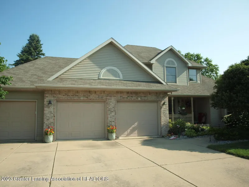 Welcome to this beautiful big Fred Motz built home. It features a lovely front porch entry to an Oak foyer. To your immediate left is a pretty den/office with glass doors & it's next to the magnificent oak stairway to the upstairs. In front of you is the living room with massive cathedral ceilings and a masonry gas fireplace. There are tall windows in this cozy room looking out to the backyard. On the East side is the primary bedroom and it will easily accommodate a king-sized bed. There are walk-in closets, luxury bath and a very newer walk-in tile shower of course with double sinks. On the rest of the first floor there is access to the basement, partially finished. A large custom oak kitchen with more cabinets than you'll ever need conveniently shares the dining room to a patio. The range top is fitted onto the island and there is a double oven in the wall. The dining area is convenien...