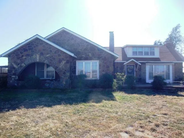 Two living areas. Two fireplaces downstairs. One large bedroom with bathroom upstairs. Rock exterior is very charming. Paved driveway. Home has been updated recently with wiring, plumbing, appliances, central heat & air, and roof. GREAT covered patio! Sits on over half an acre! Septic tank. City water. SEVERAL nice outbuildings! Huge utility room! Sunroom.