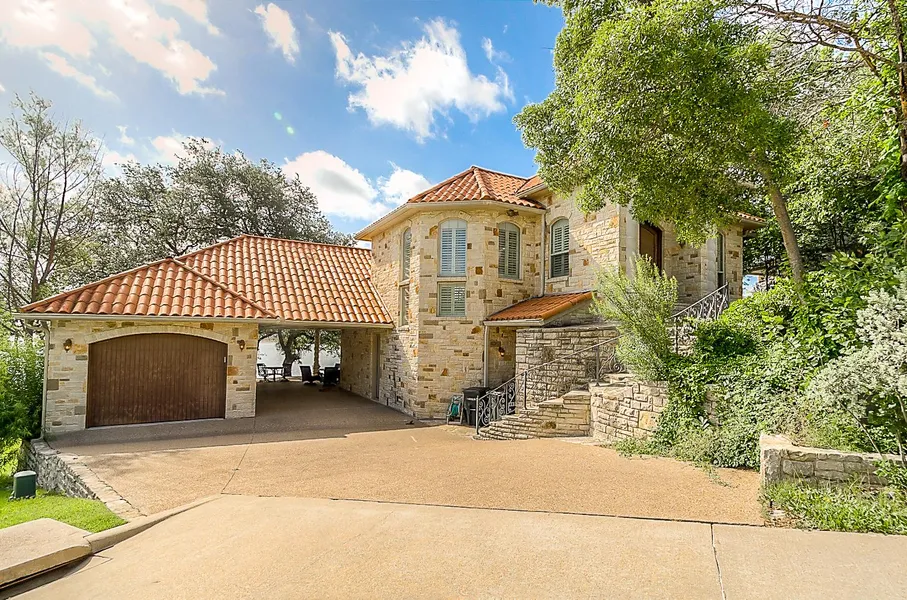 Spectacular architectural detailing showcases beautiful craftsmanship in this exceptional waterfront property.The home delivers unique style with a dramatic two story entry & curved staircase.Interior offers master suite with ensuite bath, crown molding, plantation shutters & granite countertops.Exterior has a covered patio,hot tub,fire pit,pergola & a landscaped stone path to the boat dock with Jet Ski lifts & an upper deck for entertaining.