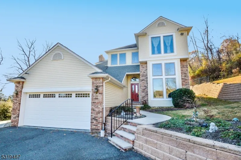 Impressive Colonial style home with contemporary flair that sits back from the road for additional privacy... enjoy spacious open rooms, soaring ceilings, beautiful kitchen with abundant Hickory cabinetry & pantry plus side desk area, newer SS appliances, Corian counters & granite island & separate breakfast area...all open to family room with gas start, brick wall fireplace, new 4 panel slider to new trex style deck... formal DR 2 story Living Room.. this level provides laundry room, office/exercise room, storage & garage access... Primary BR suite includes high ceiling, full bath w/Jacuzzi tub & separate shower & walk-in closet, 2 additional BR's on this level w/main bath including skylite! So many new improvements include new Andersen & Pella windows & slider throughout, 3 yr CAC, new carpet, many rooms freshly painted, hi-hat lighting, ceiling fans, new garage door, full house genera...