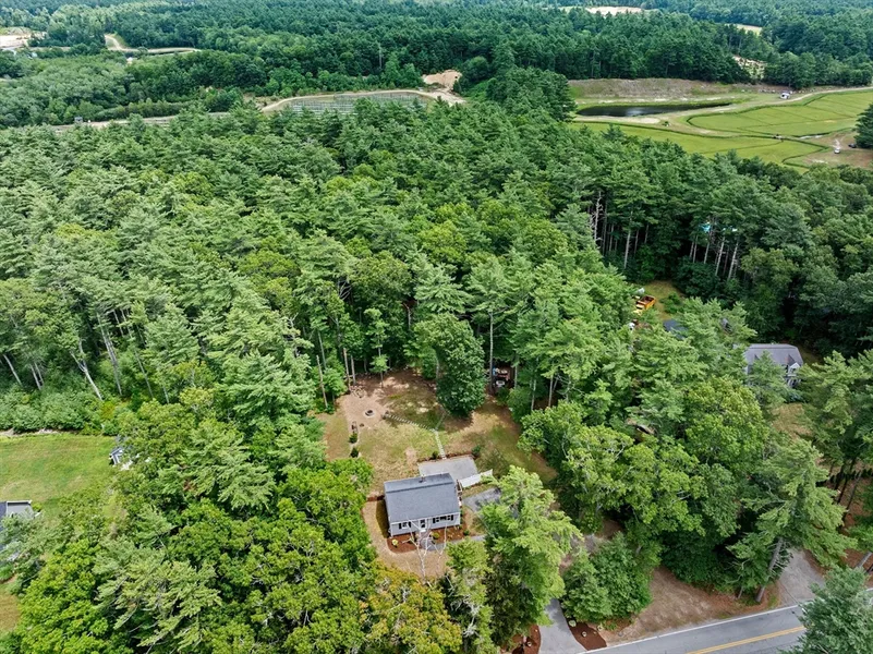 Easy living awaits at this meticulously maintained Ranch, nestled among acres of lush tree-lined land, surrounded by a private, grassy, level lot. Inside, the open concept style lives larger than life, featuring the beautifully updated kitchen w/granite counters, SS appliances, & antique white cabinets, which opens to the spacious living room. Two good-sized bedrooms, one beautifully styled with a shiplap accent wall, & the sunlit full bath completes the first floor. The partially finished lower-level offers a versatile living space w/ electric baseboard heat, perhaps an office, 2nd living room, hobbyist area, imagine the possibilities! There's no shortage of storage space throughout the rest of the basement. Welcome cozy gatherings on the 19x30 stone patio & firepit, perfect for entertaining! This turn-key home is move-in ready with major renovations in 2014, including all vinyl windows, roof, insulated doors, exterior walls insulated, septic, & water heater in 2023. A must see!