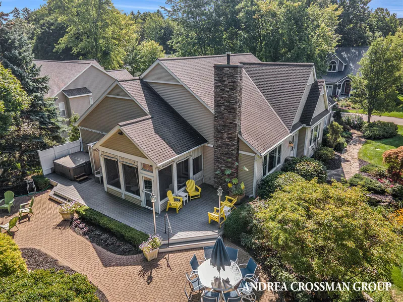 Nestled in a serene location on a deep lot this Lake Michigan home offers 33 ft. of private Lake Michigan frontage with a viewing deck. With main floor living and a finished lower level featuring three additional bedrooms, this ranch-style design caters to both relaxation and entertaining. The gourmet kitchen includes a center island, raised snack bar, and a pantry. An expansive outdoor entertaining area is complete with an outdoor kitchen area, hot tub, outdoor shower, and fire pit gathering area. A three season room and greenhouse offers endless potential, ready to suit your preferences. Sellers potentially contributing $25,000 for new beach stairs. Don't miss the opportunity to make this lakeside retreat yours today! There is no HOA. Private road and neighbors share in cost of plowing and maintenance.
