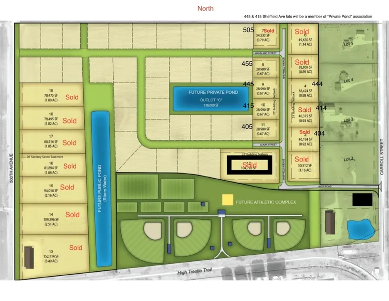 Welcome to Trailside Development in Slater! Here, you'll find the perfect blend of convenience and tranquility, with easy access to nearby cities like Ames, Ankeny, and Des Moines, all while enjoying the charm of small-town living. Imagine waking up in your dream home, nestled on a spacious lot overlooking a serene private pond. At Trailside, we offer multiple lots with picturesque pond views or established tree line lots, ensuring that each homeowner can enjoy their own slice of paradise. For those who prioritize an active lifestyle, Trailside has you covered. With future athletic fields nearby. Additionally, the nearby High Trestle Trail provides the perfect setting for biking enthusiasts to explore the beautiful Iowa countryside. At Trailside Development, we understand that your home is a reflection of your unique style and preferences. That's why we offer the flexibility for you to bring your own preferred builder to build your dream. Alternatively, our listing agents are available to guide you through the process of connecting with local builders who can turn your dream home into a reality.