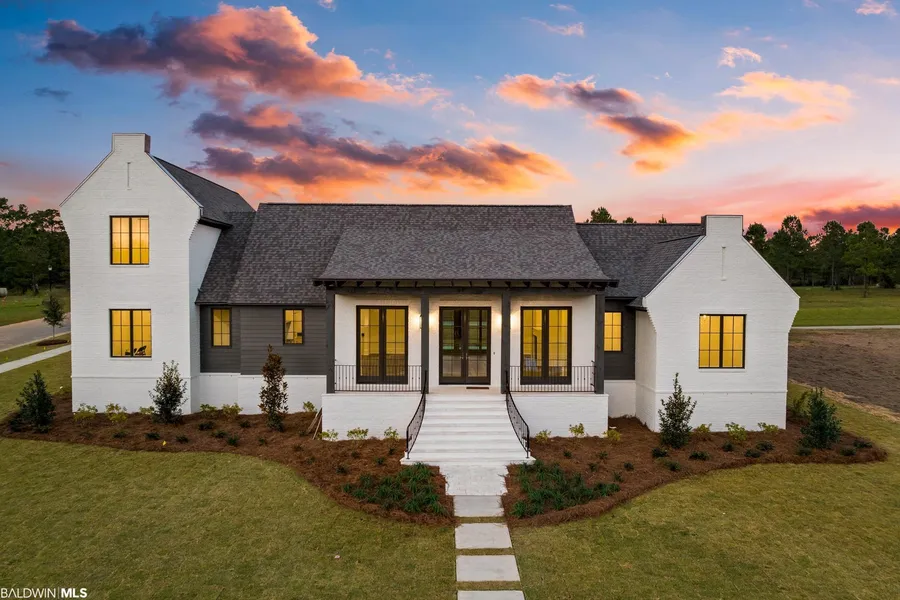 72 Hour First Right of Refusal. Located on a scenic corner lot in beautiful Fairhope?s premier architecturally driven subdivision, North Hills, this fantastic home built by Magnolia Construction & Design is truly one of a kind. Beautiful curved front porch rafters, painted brick and Artisan Hardie Board lap siding adorn the well thought out exterior of this 5 bedroom, 3.5 bathroom home. Equipped with a Thermador Chef?s kitchen, a junior primary suite, large laundry room just steps from the large primary suite, custom cabinetry and several one of a kind ceiling details are just a few of the interior perks. An interior FireRock gas fireplace and a FireRock wood burning fireplace on the back porch are sure to add to the entertaining ambiance this home naturally projects. Only the best structural components have gone into this home. Dual tankless Rinnai hot water heaters, Celbar insulation and Zip System sheathing are just a few of the details that will make this home just as efficient and comfortable as it is beautiful! All information provided is deemed reliable but not guaranteed. Buyer or buyer?s agent to verify all information.