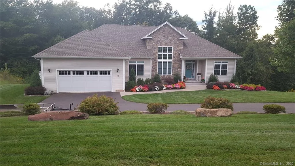 Newer construction, one-story living, custom-built home with open floor plan, lots of natural light, move-in condition. Beautifully maintained & cared for home with many extras: hardwood & tile floors, custom crown molding, cabinets & vanities with soft close drawers & marble countertops in the bathrooms. The master bedroom suite is fantastic with a large walk-in closet and a master bathroom with double sinks, closet, glass shower stall & large Jacuzzi jetted tub. The extraordinary finished lower level has 1701 sq. ft. of living space with many options for your personal tastes: home theater, exercise area, craft/hobby area, dance floor, quiet reading area & more with 2 full windows, walkout slider and a full bathroom with rounded glass shower. Washer/dryer is on the main floor, custom Levelor blinds, partially covered Trex deck, professionally landscaped with underground sprinkler system for the lawn and flower beds, Leaf Filter brand gutter guards so no need to clean gutters, 10x16 custom garden shed made to match the house & protected conservation land abutting the property. The main floor has 2154 sq. ft. & the finished lower level has 1701 sq. ft. for a total of 3855 sq. ft. living space. Set on a cul-de-sac with no through traffic in a wonderful neighborhood and convenient proximity to Bradley International Airport in Windsor Locks, CT, 15 minutes from the capital city of Hartford. Come see your new dream home!