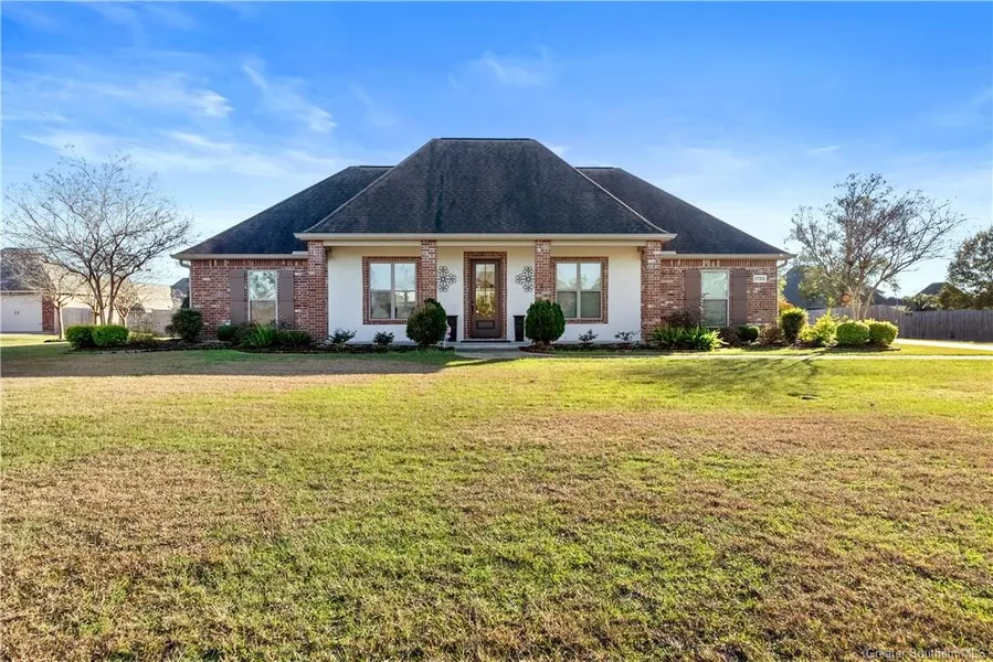 Discover your dream home in the sought-after Woodland Forest Subdivision in Moss Bluff! This stunning custom-built 4-bedroom, 3-bath gem offers a perfect blend of charm and functionality. Step into the heart of the home, where a gorgeous brick arch gracefully connects the kitchen and living room, complementing the brick-accented island. The spacious kitchen boasts a large island, a gas stove, and natural gas powering the stove, water heater, and full-house generator for added peace of mind. Enjoy outdoor living on the expansive covered patio, complete with a cooking area, perfect for entertaining. With a 3-car garage and generously sized laundry room featuring an entire wall of cabinets, storage will never be an issue. This home is a rare find-schedule your showing today.