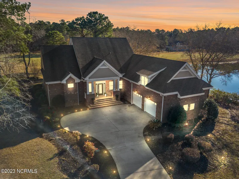 Welcome to River Landing Eastern North Carolina's top rated residential, golf and event community. Positioned on 2 lots, amazing, is the only way to describe this property with beautiful water and (# 2) fairway views! Stylish and sophistication personified with a huge downstairs master suite w/ private washroom. The spa subway tiled shower, with double shower heads, walk in closet, & double sinks are a dream come true! A master chef's kitchen features an abundance of cabinetry and long counter areas ideal for those who create art with cuisine. Granite counters and stainless steel appliances finish off the space with elegance and style. Enjoy gorgeous water views from the kitchen, den and breakfast nook which is blessed from nature with plenty of light. Did someone say light, brand new LED recessed lighting and fixtures are found throughout the entire home. This home has not one but two staircases for ease of access which also adds to the grandiosity. The front staircase leads from the front foyer to double bedrooms, a full shared bathroom and an office nook which overlooks the main living area. A second staircase leads to the finished all purpose room above garage. The home is equipped with the newest that technology has to offer in terms of being a super smart home. The exterior includes a lush landscape with covered back porch. Enjoy grilling out while watching the large mouth bass jump out of the water. An outdoor Bose surrounded system can set any mood that you like. A car enthusiasts dream come true is found with 920 SqFt of heated and cooled garage space to play. Playing is clean with the brand spanking new epoxy garage flooring. Cleaning is a breeze with a high quality central vacuum system throughout the home. Clean while listening to your favorite tunes with surround sound audio found throughout the home. You get the point; this property is a stunner that has to be seen to be believed.
