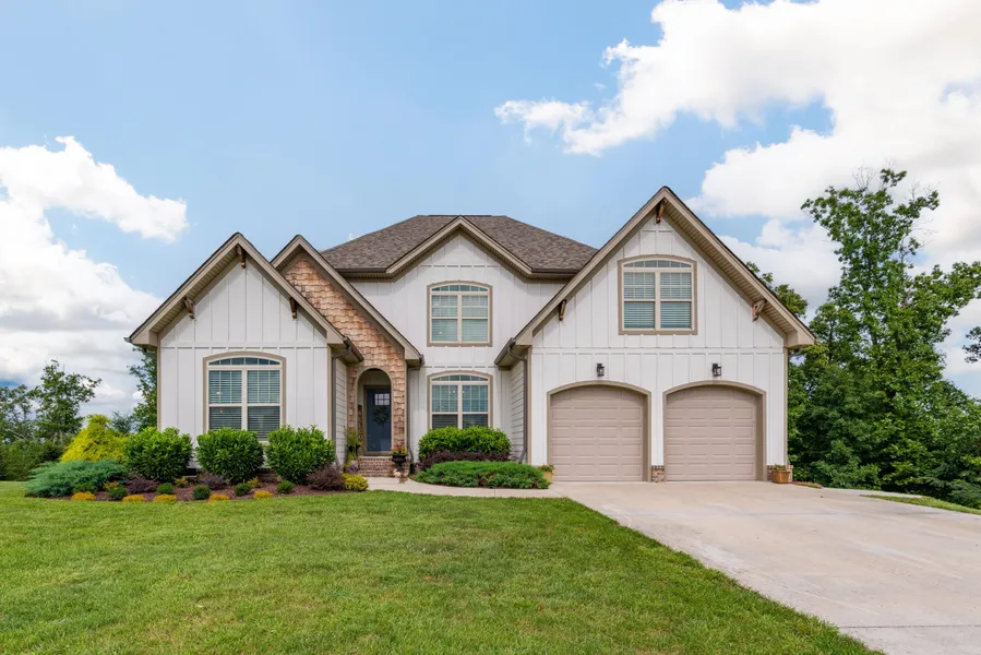 Brilliantly Luxurious Two-Story Home with Gorgeous Seasonal Lake Views! Centrally located only 23-miles from Downtown Chattanooga in the highly desirable subdivision of River Watch, this 4BR/3BA, 2,750sqft property delightfully exudes warmth and sophistication. Drenched in shimmering natural light, the home dazzles with an open floorplan, beautiful hardwood flooring, crown moulding, a designer color scheme, and a spacious living room with a fireplace. Fashioned for both every day enjoyment and holiday entertaining, the open concept gourmet kitchen features stainless-steel appliances, granite countertops, vaulted ceilings, gas range, and a center island. Wonderfully oversized, the master bedroom includes a deep closet and an en suite with a freestanding soaking tub, a separate shower, and a dual sink vanity. Other features: attached 2-car garage, laundry area, bonus room, main-level guest bedroom, community pool, winter views of river, close to shops, and more! Come See Now!
