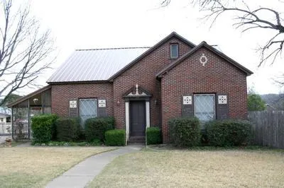 This nice home is conveniently located within walking distance from downtown shopping, churches, city park and school properties. The home was built in the early 1900’s with architecture of the time. It is a split-level with dark red brick veneer exterior and metal roof. According to the CAD, the living area is 2217 sq. ft. There are entrances from the outside on both levels. The upper level of the home has two bedrooms, 1 ½ baths, a living room, formal dining area, large kitchen and a sunroom/den. The lower level has one bedroom, a full bath a utility room and a large room that could be used as an office, a 4th bedroom or another family room. The original ceilings in the upper level were high, but when central heating and cooling was installed they were lowered to about 8 ½ ft. to accommodate the a/c ducts. Though ca...