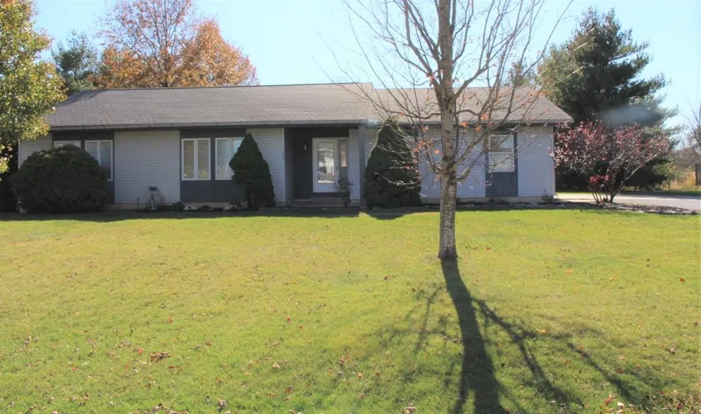 Large ranch home north of Roanoke with 3 bedrooms and 2 full baths. One bathroom has a walk in shower plus a jet tub! Both bathrooms have double vanities. Vaulted ceilings, Pella windows with slim shades and patio doors from the Great Room and the Master Bedroom lead to a nice Trex deck out back. The dining room has space for your large table and china cabinet. Nice open concept kitchen with all appliances remaining. This home is total electric with a heat pump and the REMC bill averages 198.90 per month. New carpet this summer in the Great Room, Dining Room,. and Foyer. The 2 car garage has room for your deep freeze and storage cabinets. The water softener also remains. You will love the big back yard surrounded by trees. the shed gives you even more storage space. This home is located at the edge of Roanoke with quick access to Fort Wayne. City water and sewer.