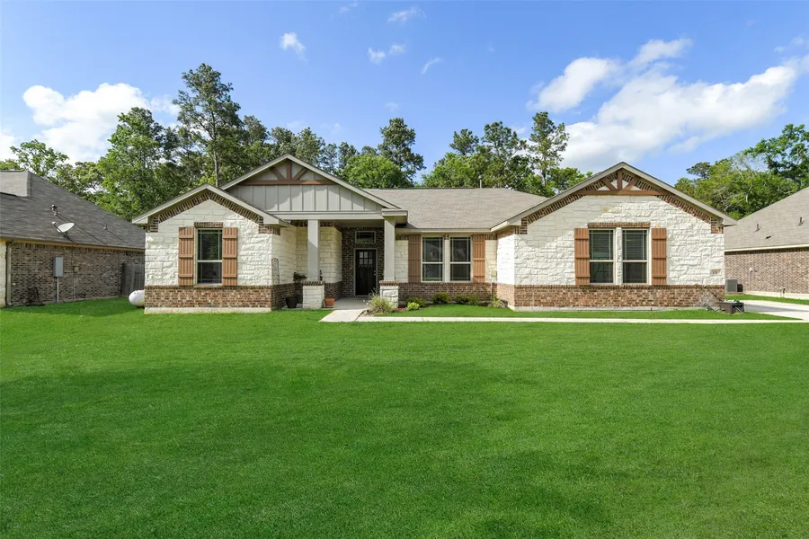 Welcome to 121 Road 662 in Dayton, TX, a beautifully designed home in Encino Estates. Built in 2021 by First America Homes, this 3-bedroom, 2-bath property offers 1,910 sq ft of open-concept living space. The spacious layout includes a flex room perfect for a home office or playroom, a modern kitchen with breakfast bar and pantry, and a large living area ideal for entertaining. The primary suite features a private bath and walk-in closet. Enjoy outdoor living on the covered back patio overlooking the expansive 0.69-acre lot. Additional highlights include a 2-car garage, double driveway, central electric cooling, propane heating, and vinyl plank flooring throughout main areas. Located in a peaceful community, this home blends comfort, style, and space with the charm of country living. Don’t miss your chance to call this stunning property your own!