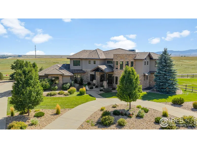 This spectacular property embodies the pinnacle of Colorado living, featuring panoramic mountain views, unique architecture and rich finishes. The show-stopping circular staircase, a remarkable architectural element, adds a touch of elegance and grandeur to the interior. The gorgeous wood trim throughout the home adds a warm and refined ambiance, Gather by the fireplace in the dramatic two-story great room with soaring ceilings, huge windows and abundant natural light. You'll enjoy working from home while taking in the breathtaking views from the main floor office with an adjacent wet bar for your morning coffee. The kitchen is a chef's dream and includes a dual fuel Wolf range, multiple dishwashers, and a massive walk-in pantry. A thoughtfully designed mudroom near the kitchen and garage provides a great drop spot and additional storage space. Gather with friends on the expansive covere...