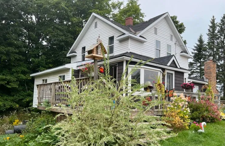 Location, Location, Location! 4-Bedr, 2 Bath home located just outside the city limits of Sault Ste. Marie and within minutes of all amenities. This home is located on the highest point in Soo Township and is located on a private, corner lot featuring black walnut, apple and lilac trees and a beautiful flower garden with a circular driveway. You will be greeted by the wrap around deck, a bright entryway, a fabulous eat-in kitchen, a large dining room with an expansive wall cut out which opens this room up to the warm, cozy, rustic, large living room with a beautiful fireplace, perfect if you enjoy entertaining. The small main floor bedroom has access to the main floor full bathroom with a jetted tub. The Primary Bedroom is located on the upper level along with another bedroom and a half.