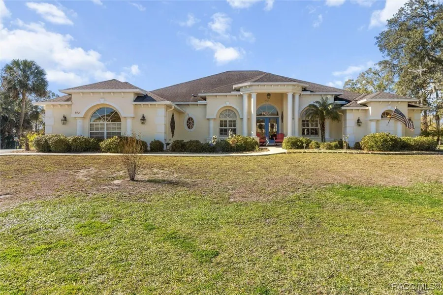 A Chef’s Desire, An Entertainer’s Delight, Everyone’s Dream..Make it Your Reality! Just outside the city limits of Crystal River, HIGH & DRY on the 7th Fairway of the Plantation Golf Course sits 7th Heaven! This amazingly unique 4BD/3BA/3CG pool home sits comfortably on 2 lots totaling .70 acres, spectacularly showcases 4750sqft under roof & boasts a meticulous attention to detail. Upgrades galore! Extremely welcoming entry greets all who enter the French doors; elegant chandelier above, tile floor w/ medallion below & electric fireplace front & center. Extravagance emanates w/ high ceilings, architectural columns/arches, & plant shelves. Huge open floorplan, split bedrms & 2 flex rms are a plus! Livingrm features a lighted tray ceiling, pocket slider, wet bar w/ wine cooler, & built in entertainment center. Plenty of built ins: buffet cabinet in diningrm, bookshelves in flex areas & com...