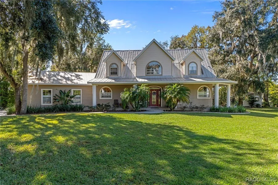 Welcome to this exceptional 4-bedroom, 3.5-bathroom, 2-story custom lake home, perfectly positioned on 216 feet of water frontage along Lake Henderson in the renowned Apopka Chain of Lakes. Offering 2,995 sq ft of meticulously designed living space, this home provides an unparalleled combination of comfort, luxury, and breathtaking water views. The first-floor master suite is a true retreat, featuring a spacious sitting area with water views. The master includes a massive walk-in closet and a spa-like en suite bathroom with dual sinks, a stand-up shower, and a relaxing garden tub. Sliders in the master bedroom open directly onto the wraparound porch, allowing you to enjoy the outdoors at any time. The main living area is open and airy, with a 28-foot vaulted ceiling in the living room, highlighted by stunning Roman columns. This grand space is perfect for both relaxation and entertaining. The gourmet kitchen is a chef's dream, featuring sleek white cabinets, granite countertops, black stainless steel appliances, an induction stove, and a wine cooler. A cozy bay window in the eat-in kitchen area provides even more natural light. Throughout the home, elegant plantation shutters enhance the luxurious feel. In addition to the master suite, the first floor also includes a home office with a walk-in closet and a half-bath, perfect for remote work or use as a guest suite. The convenient laundry room and mudroom, complete with a full bathroom, makes cleaning up from outdoor activities a breeze. Upstairs, you'll find two generously sized bedrooms, both with tray ceilings and deep closets for abundant storage. One of the bedrooms also includes a set of French doors leading to an enclosed porch, where you can enjoy the serenity of the surroundings. A full bathroom completes the second-floor layout. Step outside to discover unobstructed views of Lake Henderson and the surrounding beauty. The Trex decking area leads to your very own dock, providing direct access to the lake and a perfect place for fishing or boating. The property also features an above-ground pool and a shed with AC. This home is loaded with premium upgrades, including a newer A/C unit (2019), a metal roof, and a Generac standby generator for peace of mind with a buried propane tank. Other standout features include central vacuum, water softener, new pool pump. A two-car garage provides additional storage, while the irrigation system keeps your lawn lush year-round. Located just a short distance from downtown Inverness, this home offers the best of both worlds: serene waterfront living with easy access to shopping, dining, and outdoor recreation on the Apopka Chain of Lakes. With 216 feet of lakefront, a dock, and an abundance of features, this stunning custom home truly has it all. Don't miss the chance to own this exquisite lakefront property-where luxury meets nature. Schedule your private tour today!