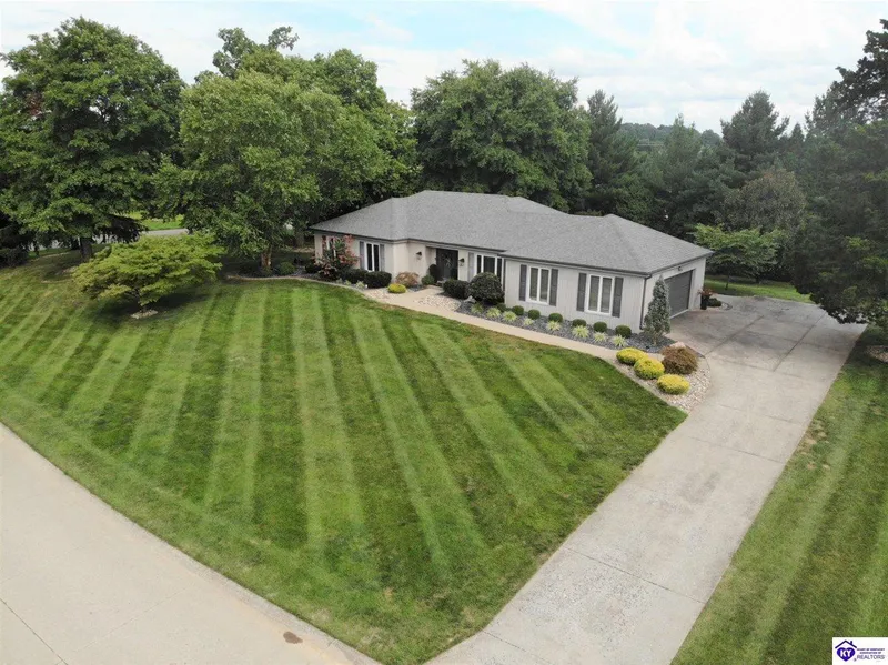 Welcome to 600 Foxfire Rd., located in one of the most prestigious neighborhoods in Elizabethtown, Kentucky. This well maintained ranch style home is situated perfectly on a 0.7 acre corner lot; walking distance to Freeman Lake Park and with mature trees wrapping around the back of the property. Mature landscaping encompasses the house accompanied by a recently added stamped concrete parking pad and sidewalk to the back deck. The interior offers a sizable 2200+ sqaure feet of finished living space to include a grand foyer with reclaimed wood ceilings, three spacious bedrooms, two recently remodeled full bathrooms, main floor laundry, a beautiful black and white kitchen with granite countertops, tile backsplash and stainless steel appliances, a large dining room with tile flooring, an oversized living room with raised ceilings and a drystack stone fireplace wall with custom built-in cabin...
