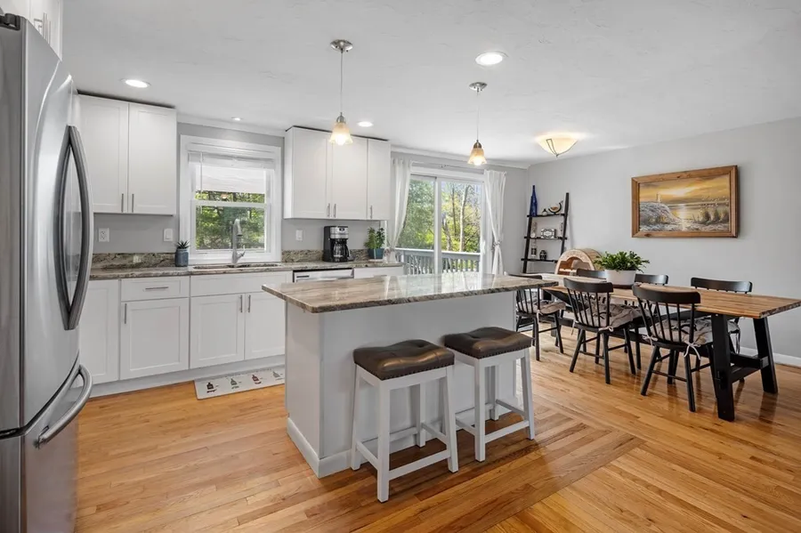Welcome to the neighborhood! Right in the heart of Hanover, the established neighborhood is one of the most desired. This home is updated with a beautiful, bright kitchen with center island, shaker cabinets, and stainless steel appliances. The open floor plan, large deck and patio with expansive yard is perfect for entertaining. The recently refinished shining hardwood floors are throughout the main floor and the three bedrooms. The lower level has been partially finished for additional living space including a perfect separate room for an office and full bath as well, but still offers storage options in addition to the attached one car garage. Other updates include a septic system replaced in 2020, replacement windows, tankless hot water heater, generator transfer switch, wood stove insert and upgraded electrical. Don't let this one get away! *Showings begin at Thursday's open house*Offers due Monday at 12 pm*