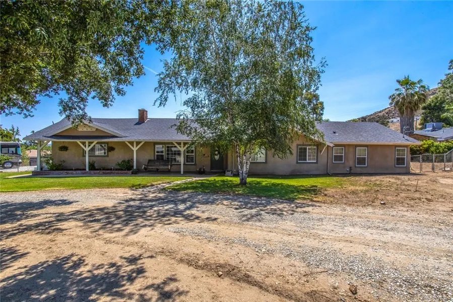 Call or Text 951-906-3800 for VIP INFO Welcome Home to this beautiful single story ranch property on an over 30,000 soft lot. From the front porch to the open entry with amazing views out the large windows this home has been updated and ready for you! A few of the recently updated items are the water main, updated gas line, updated 200 amp panel, updated septic leach system , updated tankless hot water heater with recirculating pump , updated whole house fan. Sellers recently added Laminate Floors throughout the hallway, into the master bathroom. Lets talk about this master bathroom, Wow, from the Jacuzzi tub, quartz countertops and amazing Shower this is an amazing bathroom. The home also has a wood burning stove, Crown molding, new beautiful large and updated indoor laundry room. The property has Enough parking for whatever you want from toys, boats, RV and all your cars. The home also has Mature oak trees with juvenile fruit orchard with orange, lemon, apricot, peach, cherry, gala apple, nectarine, green apple, pear and purple plum. 951-906-3800