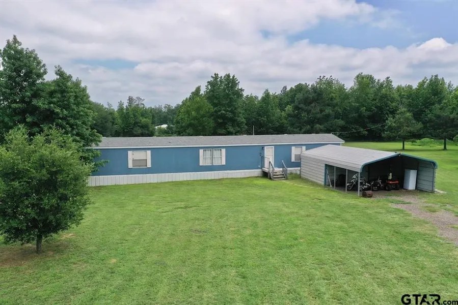 Single wide manufactured home on just shy of an acre in Lindale ISD. The split floor plan offers the owners suite on one end of the home with the two additional bedrooms on the other end. In the middle is the living, kitchen and dining. Out front is a covered carport with an attached 15 X 15 store room.
