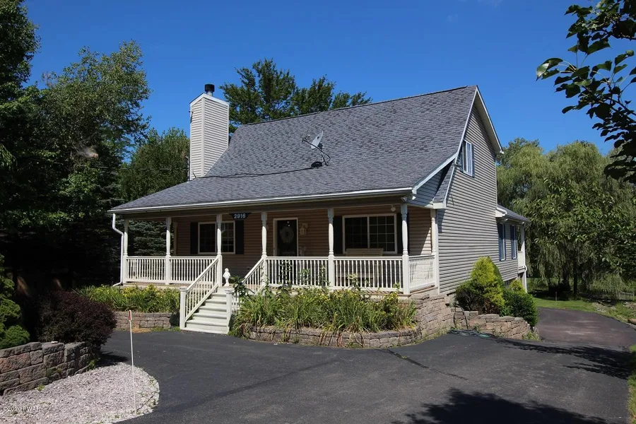 Golf course views and serenity surround this 3 BR , 2.5 Bath Cape Cod with a focus on living, entertainment, and garage space. Paved circular drive provides easy access for guests, and then leads to built in garage and another separate 2 car garage on the residence lot. A bonus 2 car garage with finished 2nd floor is located on the adjacent lot (Seller will pay dues on 2nd lot) so count them up... a total of 5 garage bays! Room to store your boat and big boy toys! The inviting covered front porch leads inside to a vaulted living room with cherry wood flooring and a cozy brick-faced fireplace. The kitchen is spotless and its white cabinetry gleams with soft under-cabinet lighting and glass back-splash.