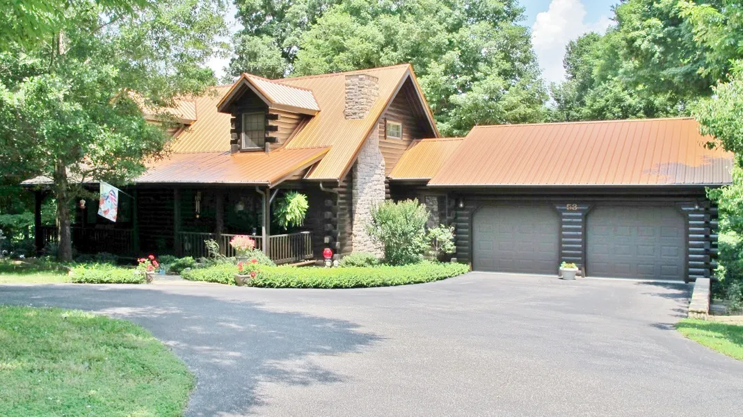BREATHTAKING LANDSCAPED HOME SITE LAKE BARKLEY AREA! Nice custom built 3 bedroom, 2 bath log home located near Eddy Creek Marina! This 2,550 sq ft under roof home features eastern white pine. Open concept with vaulted beam ceiling and impressive stone fireplace. New energy efficient HVAC, 2-car garage with large enclosed 8 x 36 heated sunroom with views of Lake Barkley in the wintertime. A short walk to the water. Near Mineral Mound Golf Course, town and I-24. Must see! Only $249,900.
