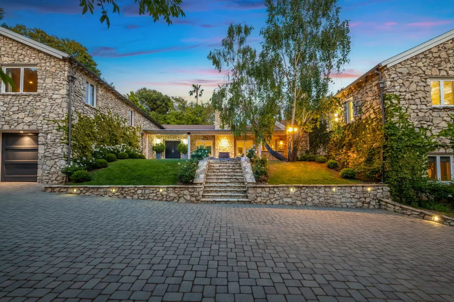 Perched on a private knoll in the heart of coveted Holmby Hills, this extraordinary estate represents the pinnacle of refined living. Masterfully reimagined and completely rebuilt with the utmost attention to quality, craftsmanship, and architectural detail, this approx. 7,025 sq. ft. Traditional estate is a harmonious blend of timeless charm and modern elegance. Beyond dual gates and a circular driveway, a gracious motor court welcomes guests into a world of serenity and sophistication. Enveloped in lush, mature landscaping, the property offers total seclusion on over 31,000 sq. ft. of meticulously manicured grounds. A grand formal foyer sets the tone, opening to light-filled living spaces adorned with gleaming hardwood floors, intricate custom millwork, and expansive wall space ideally suited for fine art. The formal living room, anchored by a stately fireplace, exudes quiet elegance, while the expansive family room opens to a chef's kitchen of exceptional scale, complete with professional-grade appliances, a large center island, breakfast bar, and sunlit breakfast room. The luxurious primary suite is a sanctuary unto itself, featuring soaring ceilings, a tranquil sitting area, and serene garden views. Additional amenities include a grand-scale formal dining room with a walk-in wine room, a large state-of-the-art theater, an office, and a lower level fully equipped gym and game room, designed for sophisticated leisure. Outdoors, the estate reveals its true grandeur. The expansive, flat backyard is an entertainer's dream, offering a harmonious blend of green lawn and curated hardscape, a 45-foot pool with spa, and ample space to host gatherings of any scale in total privacy. With a 3-car attached garage, generous motor court, and an incomparable setting in one of Los Angeles' most prestigious enclaves, this residence stands as a rare offering, where architectural distinction meets elevated living.