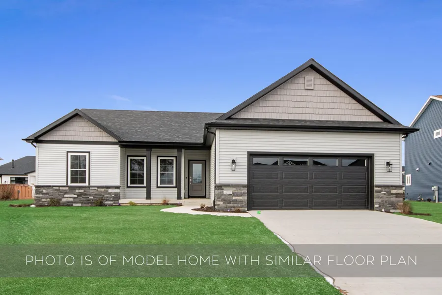 SELLER IS OFFERING $3500 TOWARD BUYER CLOSING COSTS AND UP TO $10,000 TOWARD AN INTEREST RATE BUYDOWN WITH ACCEPTABLE OFFER**Mayflower Estates MOVE IN READY Stunning Modern Craftsman Ranch by award-winning Devine Homes by Miller. Welcome to the Lauren floor plana beautifully designed 4-bedroom, 3.5-bath ranch crafted by one of Michianas most respected builders. This open-concept home offers effortless main-level living with high-end finishes and thoughtful details throughout. The heart of the home is the expansive great room, featuring soaring 10 ceilings, transom windows, and a sleek 42 gas fireplace. The kitchen impresses with quartz countertops, tile backsplash, stainless appliance package, large walk-in pantry, and an oversized island with seating for four. A sliding door leads to a 16'x16' patioperfect for outdoor entertaining. The spacious primary suite boasts tray ceilings, a walk-in closet with direct access to the laundry room, and a spa-inspired bath with double vanity and walk-in tile shower. Two additional bedrooms and a full bath are located in a private wing of the home. A convenient guest bath, mudroom with built-ins, and laundry with cabinetry add even more functionality. The finished basement expands your living space with a 4th bedroom, another full bath, and a large rec room. Outside, enjoy a fully sodded front yard, seeded sides and rear, landscaping with irrigation system, and a Ring doorbell for added peace of mind. Set within a thoughtfully designed new neighborhood, this home offers the rare luxury of allowing outbuildingsideal for a private studio, workshop, or additional storage, tailored to your lifestyle. The Lauren plan offers style, comfort, and smart designinside and out.