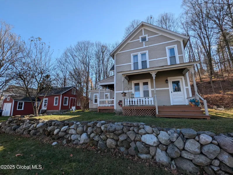 BOM due to Inspection issue that is currently being addressed - contact agent for details. This 1880s farmhouse has been thoughtfully upgraded, blending modern comforts with its original integrity and character. Situated on 0.72 acres, the home offers low-maintenance living with a small backyard. The stunning hill in the back creates a beautiful backdrop, especially in the Spring, Summer, and Fall when the lush vegetation is in full bloom. Located in the heart of Cambridge, you're just minutes from shopping and dining, with Saratoga and Vermont just a short drive away. The bonus barn is perfect for artists, craftsmen, or extra storage and entertainment space. An additional room on the first floor offers versatile options as a primary bedroom, playroom, office, den, or guest room.