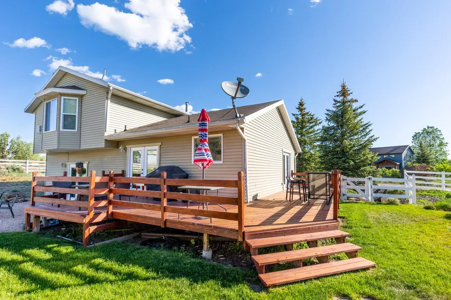 This Highland Estates property is located in the sought-after Trailside neighborhood and sits on .74 acres with views toward the mountains. Perfect as a primary residence, second home, or rental property, this home is located just 1/2 block from the city bus stop at the corner of Highland Drive and Kingsford Ave. No need to fight for parking at the ski resorts, just walk to the city bus stop and head to the resorts or Main Street. The main level has newer hardwood floors in the front living area and family room. Vaulted ceilings allow plenty of natural light. New French Doors open to the Redwood deck off the family and dining areas where you can enjoy your morning coffee, mountain views and watch the sunrise. This property is close to all the Round Valley trails for easy hiking and biking access. Bring your horse to your new home that has a separate barn. The property is partially fenced and includes fencing to completely enclose the property. Windows replaced in 2020-2021, new furnace in 2020, insulated garage door added 2018, and trees have drip irrigation.