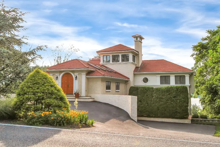 Million dollar view! Every detail of this exceptional custom Mediterranean style home was thoughtfully designed to bring enjoyment and comfort. Enter through stately arched doors to a welcoming oasis. The sound of an indoor waterfall amidst lush green trees and plants in raised beds draws you into the astonishing view from the foyer that will take your breath away. The beauty of Blue Marsh Lake can be seen from just about every room in the home but none as magnificently as from this vantage point. An impressive two story living room with an entire wall of palladium windows frames the custom made semi circular couch with a credenza that flows with the couch. Display your treasures on the shelves and when entertaining set out hors doeuvres and aperitifs to the delight of your guests. A splendid deck is off the main floor allowing you to enjoy your beautiful surroundings outdoors. Off the l...