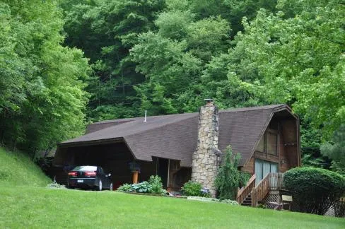 Cedar home with three bedrooms and two bathrooms. Two car garage. Hardwood flooring, wood walls, on almost an acre.