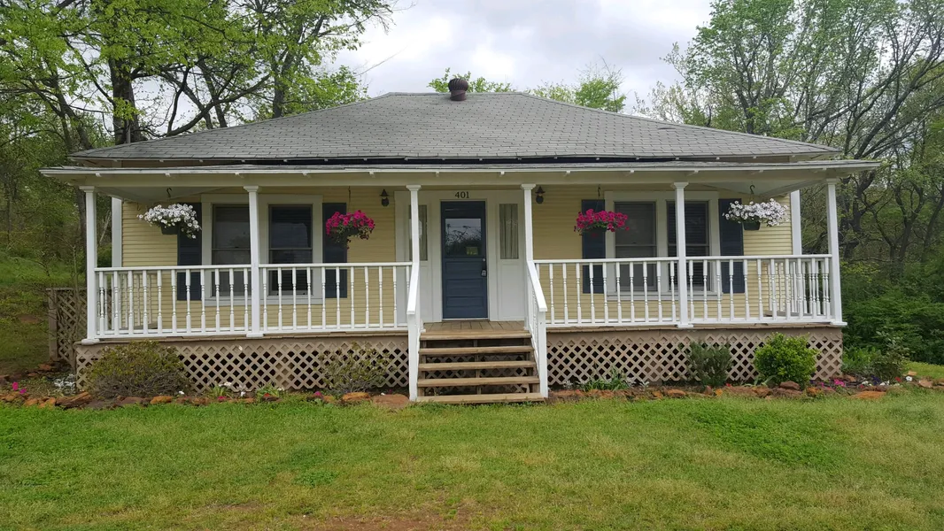 Behind this exceptionally charming front porch is a spacious and efficient home with entry hall, living room, dining room, two bedrooms, cozy den, L-shaped kitchen, laundry, and large bathroom with tub/shower. Central air and plumbing are fully updated. Fireplace in living room has gas insert. Remodeled kitchen has electric stove and large pantry. This comfortable and freshly painted home offers plantation blinds, ceiling fans and updated lighting throughout. The setting is woodsy yet so convenient to Lindens picturesque town square. Double-deep lot has circle , while a third lot on the south side of the property offers generous additional parking for recreational vehicle. The bonus feature is a pleasant year-round picnic pavilion bordering Ten Yard Branch and the 22-acre City Park.